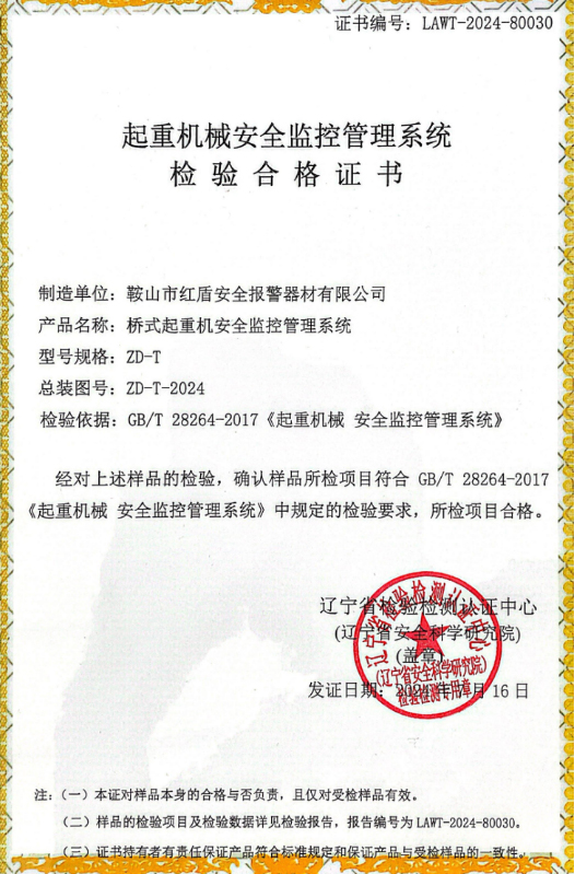 起重機(jī)安全監(jiān)控管理系統(tǒng)檢驗(yàn)合格證書